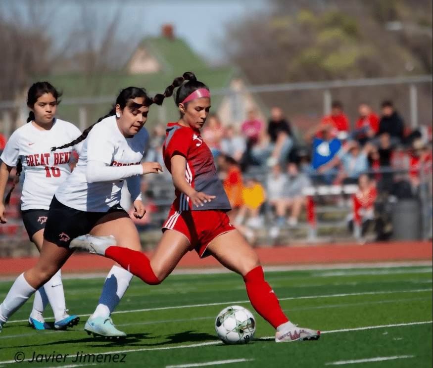 Wichita North High soccer player Anahi Ibarra-Arevalo, a senior who some might remember as a Northwest Grizzly from past seasons, is now showcasing her considerable talents with the cross town Red Hawks. When asked about the adjustment, Anahi says, “It’s going great. I love the new environment. The teachers are amazing, and I have really enjoyed making new memories and connections with my new teammates.”
