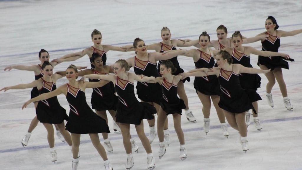 Synchronized skating features teams of up to 20 skaters performing choreographed routines set to music, often combining intricate formations, speed and precision in performances lasting less than five minutes. Teams compete in multiple divisions ranging from youth to adult levels.